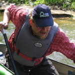 - Äkta mannen styr genom forsen.